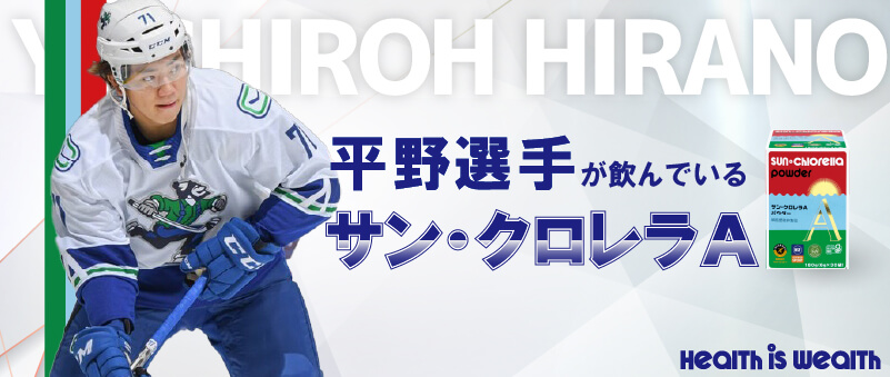 「サプリメントはチームの指示で飲みますが、本当に種類も量も多い。なかには、飲むときにノドに引っかかるというか、独特の味や香りでなかなか飲み込むのに苦労するものもあるのは正直なところです」という平野選手を助けているのはサン・クロレラAパウダー。